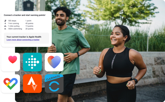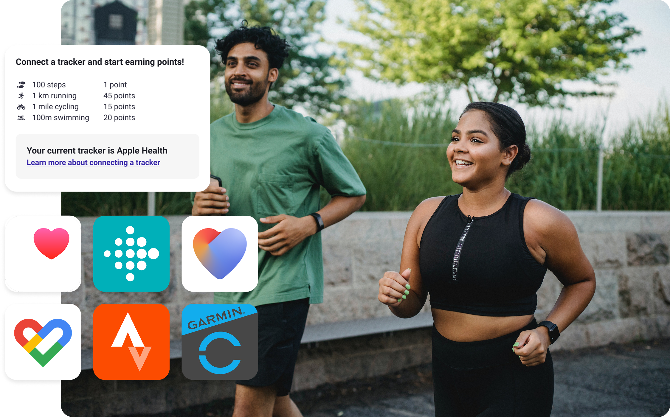 Users can connect a range of popular fitness apps and wearables to their Moves+ account, including Apple Health, Google Fit, Fitbit, Withings, Garmin, and Strava. Points are automatically calculated for the activity they do, and reaching fitness milestones are celebrated with goals and badges.