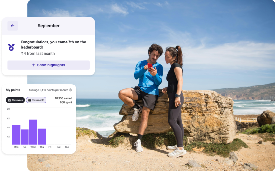 Create surveys and report on a range of user metrics - from activity to rewards, all through our powerful reporting module. Users can see their weekly and monthly fitness trends, and receive monthly summaries of their activity such as leaderboard results, points and badges earned, challenges completed, and friends made.